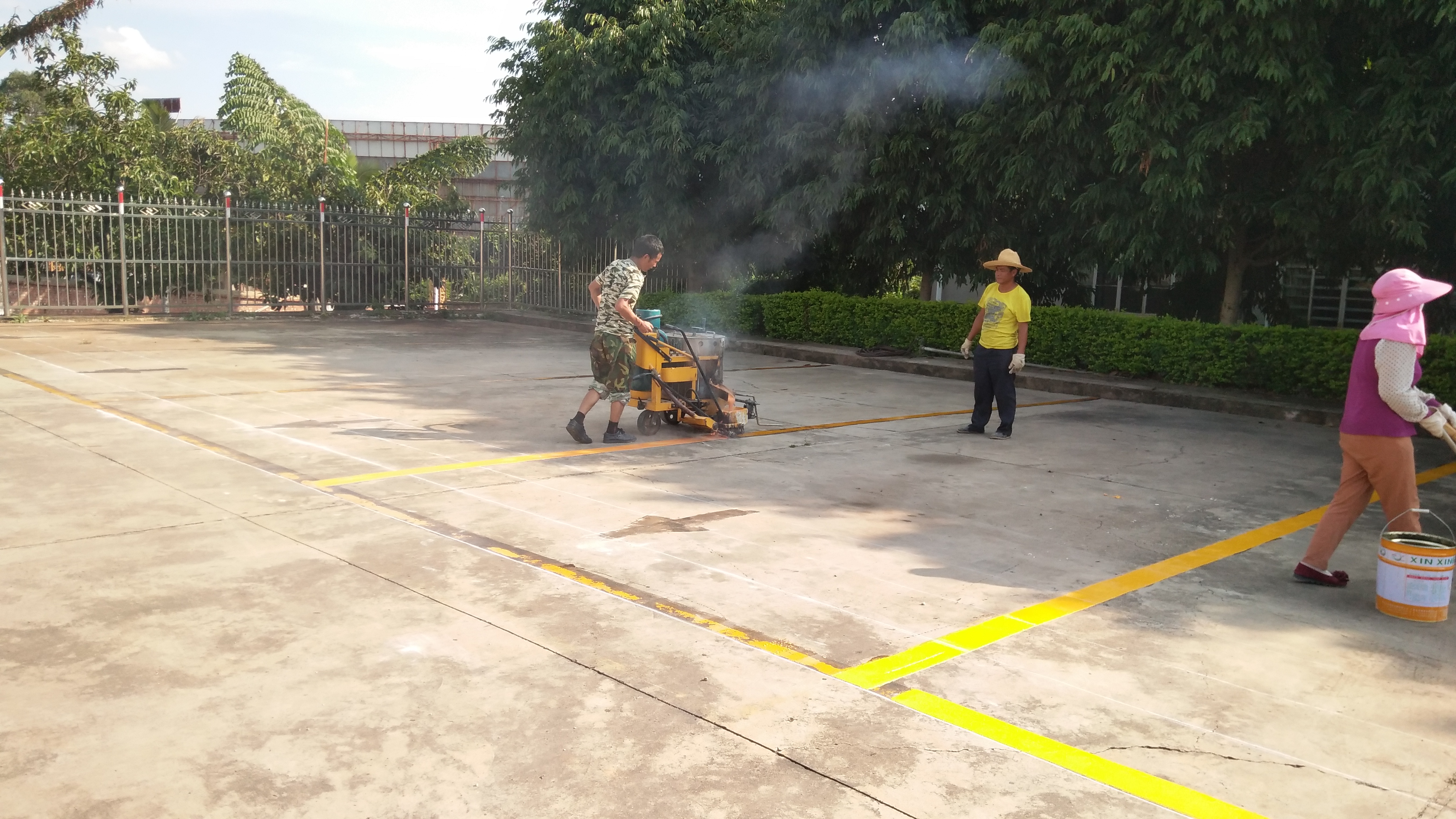 2019年8月4日至7日,施工方采用公路專用標識劃線機對開遠分公司生產(chǎn)區(qū)、總庫區(qū)、辦公區(qū)劃分人車分隔線、人行道、箭頭標志、減速帶標志、車位線。人車分隔線在夜晚燈光的照射下具備反光功能,可有效減少意外事故發(fā)生。