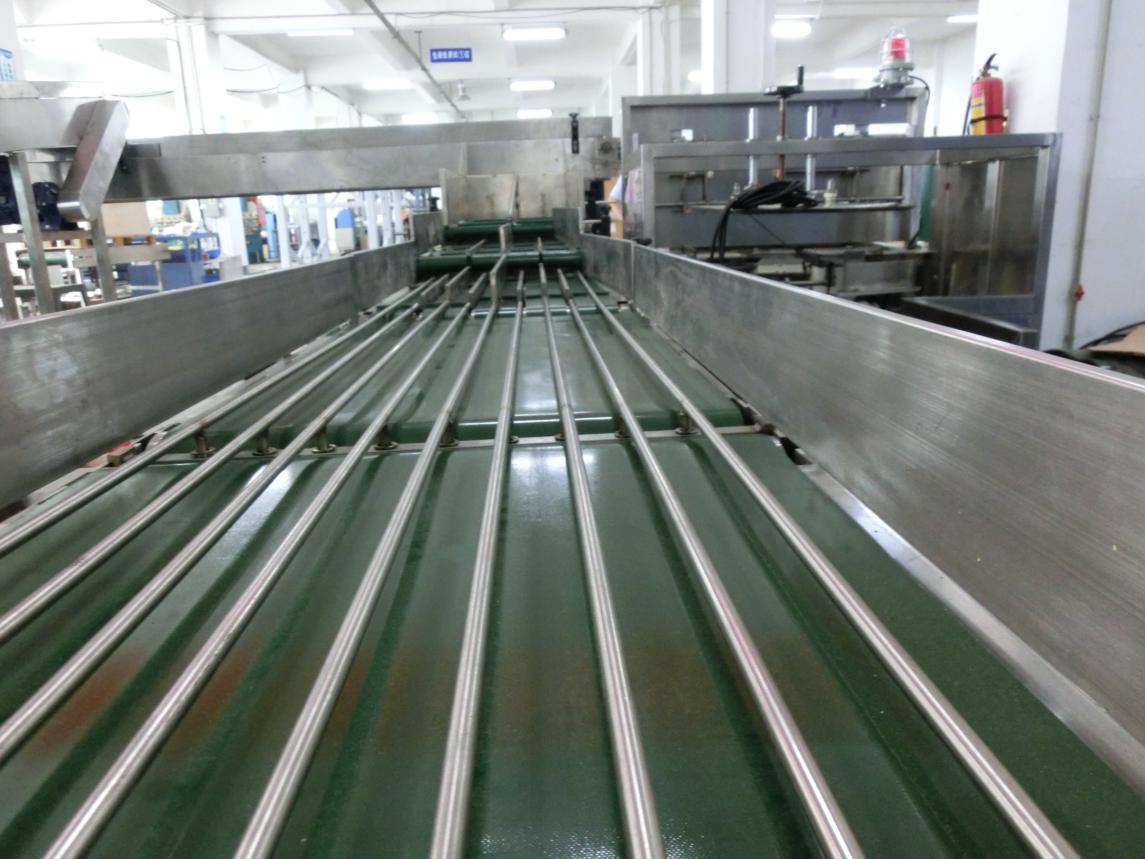 技改過(guò)程中,設(shè)備動(dòng)力科針對(duì)包裝工房輸送鏈板A線、B線匯合理藥處頻繁出現(xiàn)擁擠、卡阻及理藥不順造成設(shè)備故障等現(xiàn)象,以及由此可能引起的超員超量安全隱患及耗材,嚴(yán)重制約包裝工房整體生產(chǎn)效率及現(xiàn)場(chǎng)管理提升等問(wèn)題,結(jié)合產(chǎn)品的規(guī)格尺寸和工藝特點(diǎn),自制了Ф45mm藥卷整理裝置,對(duì)開(kāi)箱機(jī)、藥卷輸送皮帶、對(duì)視角系統(tǒng)、抓手坐標(biāo)重新標(biāo)定,在包裝機(jī)器人操作系統(tǒng)中增加了一套生產(chǎn)Ф45mm產(chǎn)品程序,歷經(jīng)8小時(shí)不間斷努力后,整個(gè)技改工作順利完成。