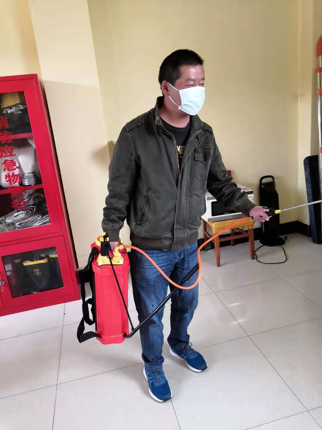 自1月29日起,后勤管理部每日對集貿(mào)市場、各值班守衛(wèi)門房進行消毒。