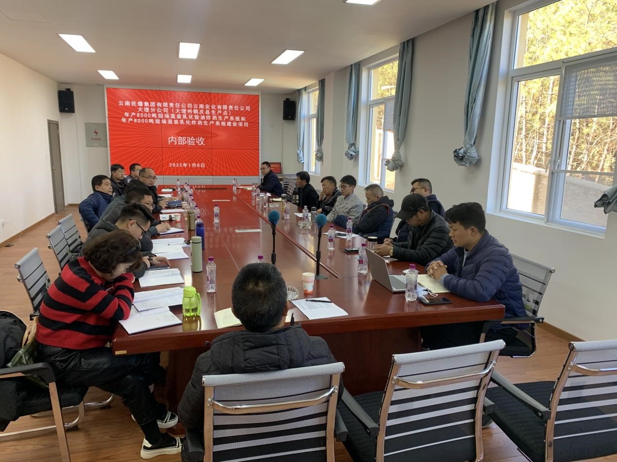 1月8日,公司黨委副書記、總經(jīng)理彭長(zhǎng)華帶隊(duì),到大理分公司組織“年產(chǎn)8000噸現(xiàn)場(chǎng)混裝乳化銨油炸藥生產(chǎn)系統(tǒng)和年產(chǎn)8000噸現(xiàn)場(chǎng)混裝乳化炸藥生產(chǎn)系統(tǒng)建設(shè)項(xiàng)目”建筑安裝工程內(nèi)部驗(yàn)收。公司總部相關(guān)部門負(fù)責(zé)人、大理分公司、項(xiàng)目施工單位、監(jiān)理單位相關(guān)人員參加驗(yàn)收會(huì)。