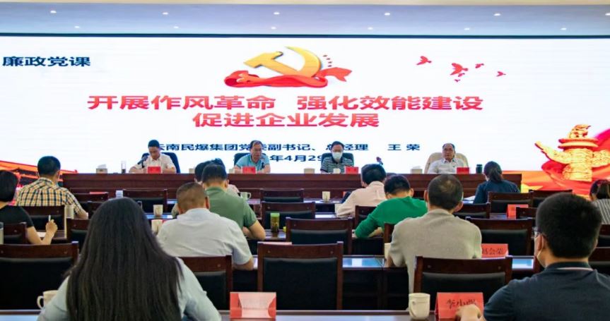 2022年4月29日上午,云南民爆集團有限責任公司黨委副書記、總經理王榮到公司講授廉政黨課。公司領導班子成員,各職能部門中層管理人員及部分職工代表等共48人參加黨課學習。