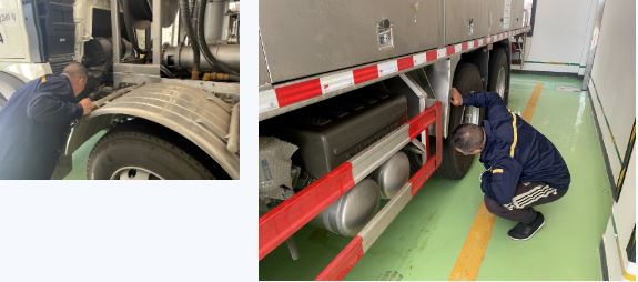 檢測(cè)過(guò)程中,技術(shù)人員對(duì)每輛炸藥混裝車上的生產(chǎn)設(shè)備流量器、壓力表粘貼了檢測(cè)標(biāo)識(shí)和檢測(cè)日期,保證混裝車在投入生產(chǎn)時(shí),各生產(chǎn)設(shè)備計(jì)量器具完好有效,能正常投入運(yùn)行。同時(shí),組織了安全管理人員對(duì)公司8輛現(xiàn)場(chǎng)混裝炸藥車開展安全隱患排查,對(duì)現(xiàn)場(chǎng)混裝車輛的胎壓、電瓶、液力緩速器、液壓氣囊等進(jìn)行測(cè)試,對(duì)車輛配備的消防器材、安全警示標(biāo)志、標(biāo)識(shí)完好情況進(jìn)行檢查,及時(shí)排除安全隱患問題,確?,F(xiàn)場(chǎng)混裝車輛生產(chǎn)設(shè)備的完好有效和車輛運(yùn)輸時(shí)的安全,為公司生產(chǎn)運(yùn)輸工作的安全運(yùn)行提供了保障。