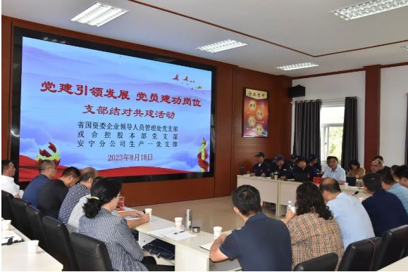 8月18日,省國(guó)資委企業(yè)領(lǐng)導(dǎo)人員管理處黨支部聯(lián)合戎合控股本部黨支部到安化公司與安寧分公司生產(chǎn)一黨支部開展“支部結(jié)對(duì)共建”活動(dòng)。省國(guó)資委企業(yè)領(lǐng)導(dǎo)人員管理處黨支部、戎合控股本部黨支部、安化公司班子成員及安寧分公司生產(chǎn)一黨支部共計(jì)40余名黨員參加活動(dòng)。