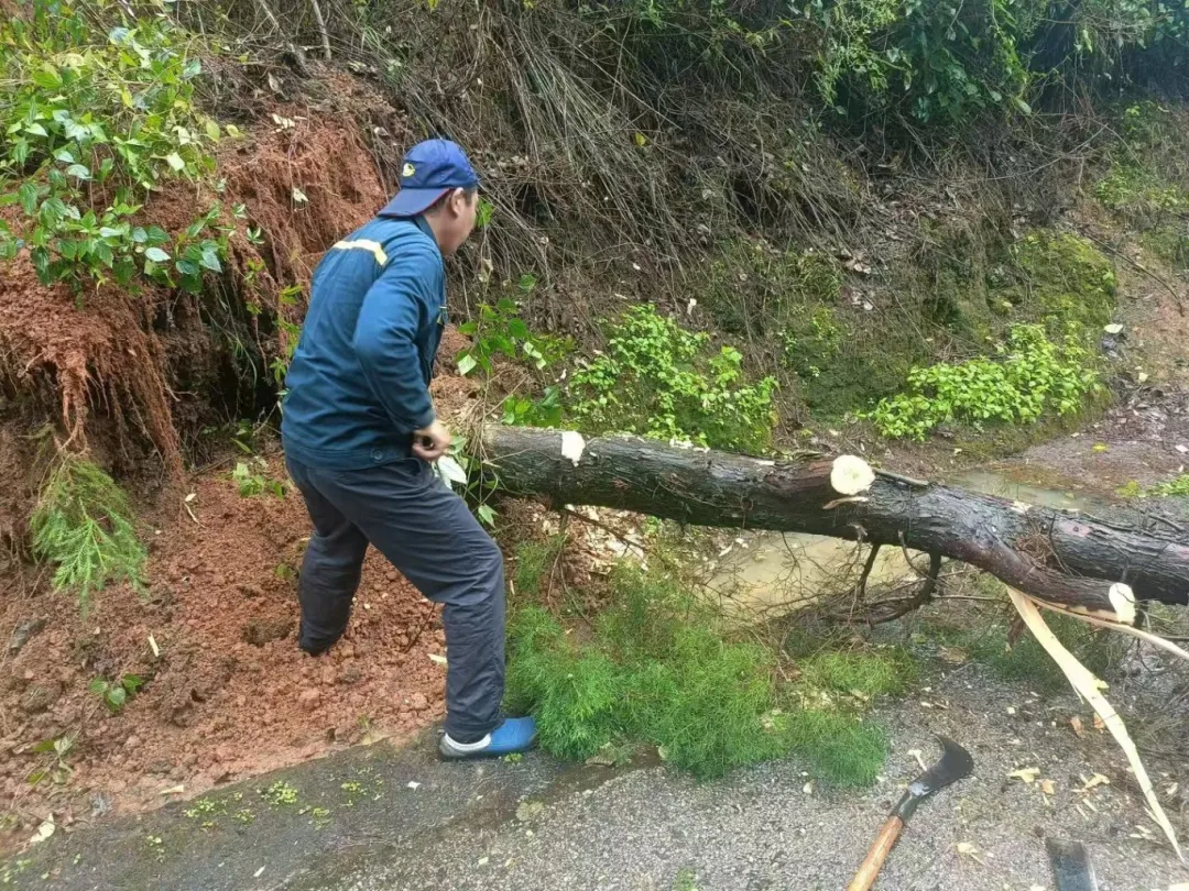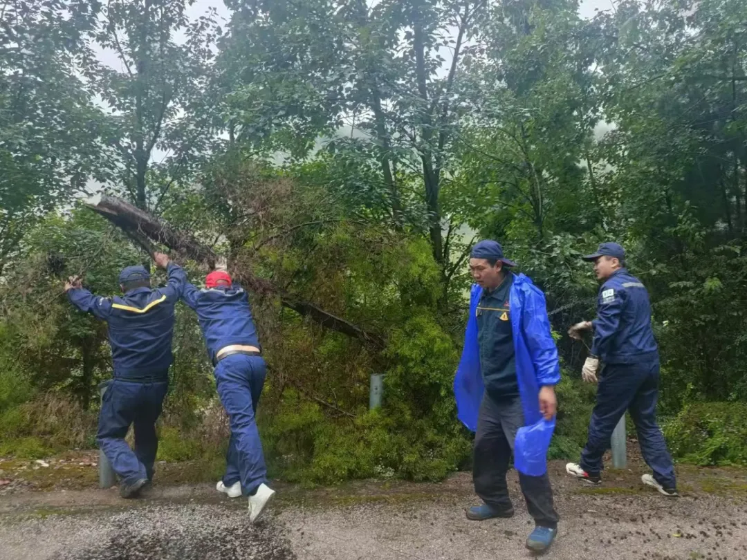 近期,受近期臺風(fēng)“摩羯”導(dǎo)致的連續(xù)性強降雨影響,五八一公司生產(chǎn)區(qū)至總庫區(qū)道路旁一棵大樹橫倒至路中央,阻斷了車輛正常通行。為恢復(fù)道路通暢,確保產(chǎn)品運輸車輛交通安全,五八一公司立即召集黨員帶頭組成搶險隊伍趕赴現(xiàn)場。